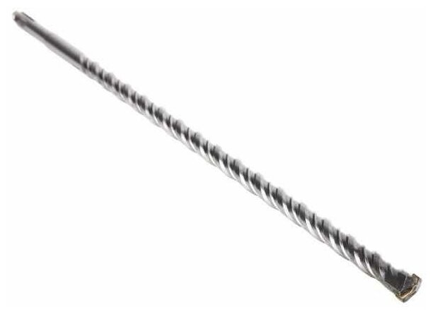Твердосплавная пластина марки ВК8 имеет специальную заточку. Рассчитана на ударное сверление. Инструмент изготовлен из стали марки 40Х. Бур с двухзаходной усиленной спиралью позволяет улучшить удаление продуктов сверления и уменьшает нагрузку на перфоратор. Корпус бура имеет увеличенную площадь сечения, что уменьшает амплитуду его вибраций. При работе с бурами длиной более 400 мм необходимо дополнительное засверливание более коротким буром. Хвостовик необходимо смазывать.