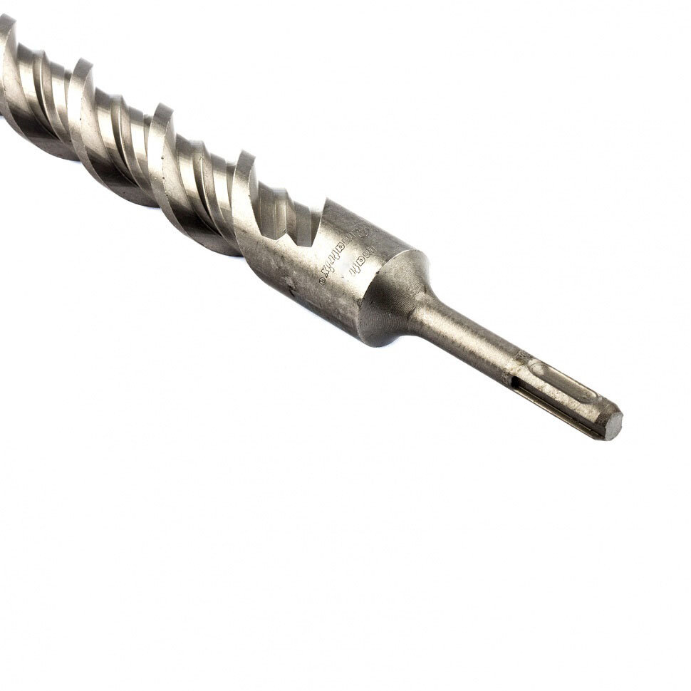 Твердосплавная пластина марки ВК8 имеет специальную заточку. Рассчитана на ударное сверление. Инструмент изготовлен из стали марки 40Х. Бур с двухзаходной усиленной спиралью позволяет улучшить удаление продуктов сверления и уменьшает нагрузку на перфоратор. Корпус бура имеет увеличенную площадь сечения, что уменьшает амплитуду его вибраций. При работе с бурами длиной более 400 мм необходимо дополнительное засверливание более коротким буром. Хвостовик необходимо смазывать.