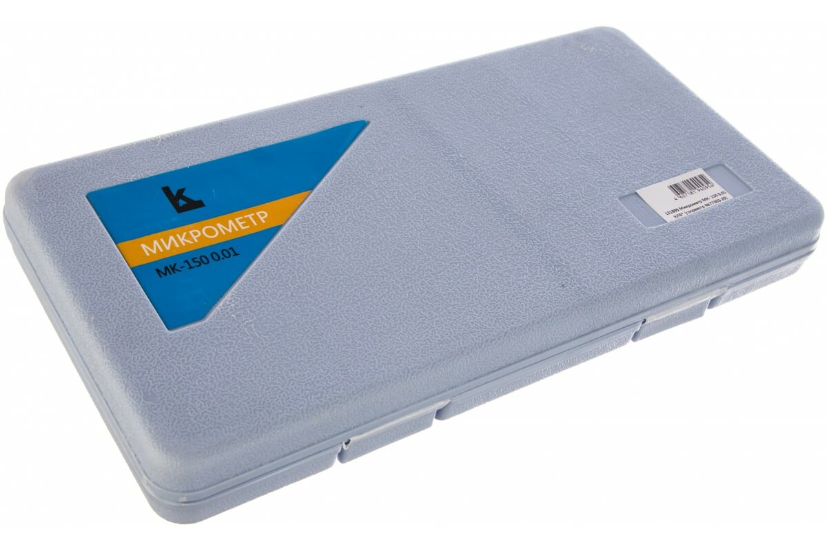 Микрометр МК-150 0.01 КЛБ- измерительный прибор для высокоточного (с погрешностью от 2 до 50 мкм) определения линейного размера. Использование микрометра возможно в любой производственной области, где требуется определение размеров детали – механическая обработка, точная сборка, настройка оборудования и др.Конструкция микрометра состоит из трех основных элементов:Рамы в виде полукруга для фиксации измеряемой детали;Ручки с трещоткой и неподвижным стеблем со шкалой и измерительным барабаном;Винта с неподвижной гайкой для измерения величинЗамер с помощью микрометра выполняется посредством перемещения винта в неподвижной гайке.Цифровые микрометры (МКЦ) оснащенные электронным измерительным устройством, пользуются популярностью благодаря удобству и точностью измерения, а также дополнительными возможностями инструмента:Возможность производить замер с точностью до 1 мкм (с погрешностью до 0,1 мкм);Встроенная калибровка;Цифровое табло для быстрого и точного получения результата;Переключение между метрической и дюймовой системами;