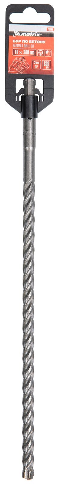 Бур по бетону Matrix SDS PLUS 10 x 300 мм оснащен твердосплавной пластиной марки ВК8, и имеет специальную заточку, которая рассчитана на ударное сверление. Инструмент изготовлен из стали марки 40Х. Бур с двухзаходной усиленной спиралью позволяет улучшить удаление продуктов сверления и уменьшает нагрузку на перфоратор.