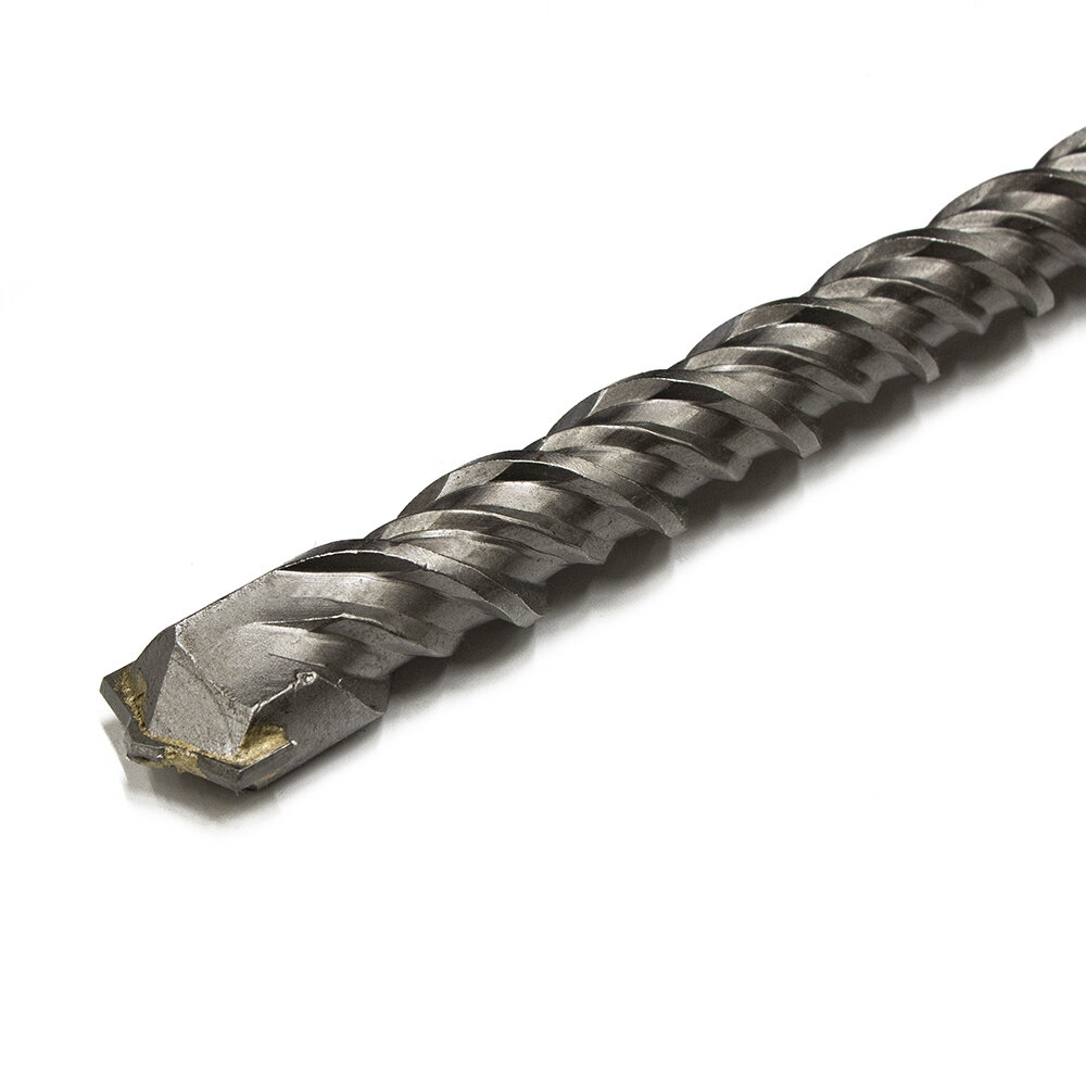Твердосплавная пластина марки ВК8 имеет специальную заточку. Рассчитана на ударное сверление. Инструмент изготовлен из стали марки 40Х. Бур с двухзаходной усиленной спиралью позволяет улучшить удаление продуктов сверления и уменьшает нагрузку на перфоратор. Корпус бура имеет увеличенную площадь сечения, что уменьшает амплитуду его вибраций. При работе с бурами длиной более 400 мм необходимо дополнительное засверливание более коротким буром. Хвостовик необходимо смазывать.