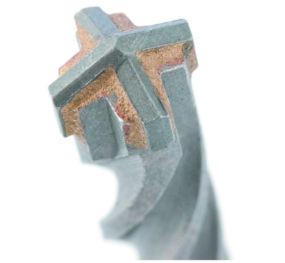 Отличительными элементами этих буров является крестовая твердосплавная пластинка из ВК8. Четыре резца которой позволяют более четко удерживать инструмент в отверстии и предотвращать закусывание при попадании в арматуру.