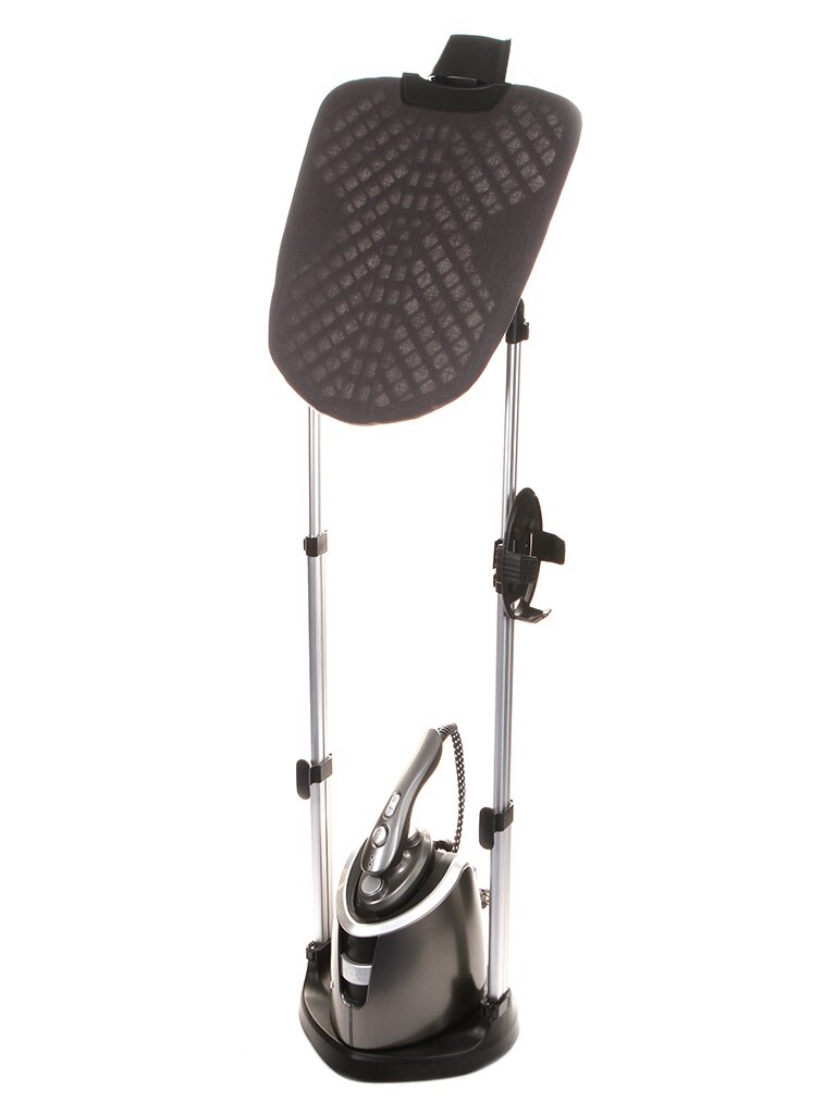 | Комплект поставки | Отпариватель, съемный резервуар для воды, варежка, держатель утюжка, гладильная доска, телескопическая стойка 2 шт, колодка для воротничка, основание, насадка для деликатных тканей, документация |