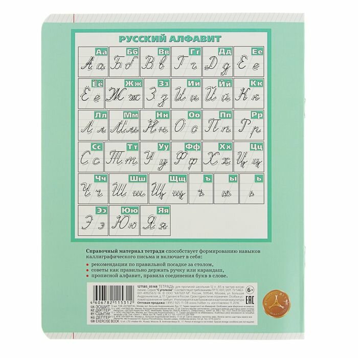 Тетрадь А5 12 листов линейка Hatber для прописей (40Т5В1)