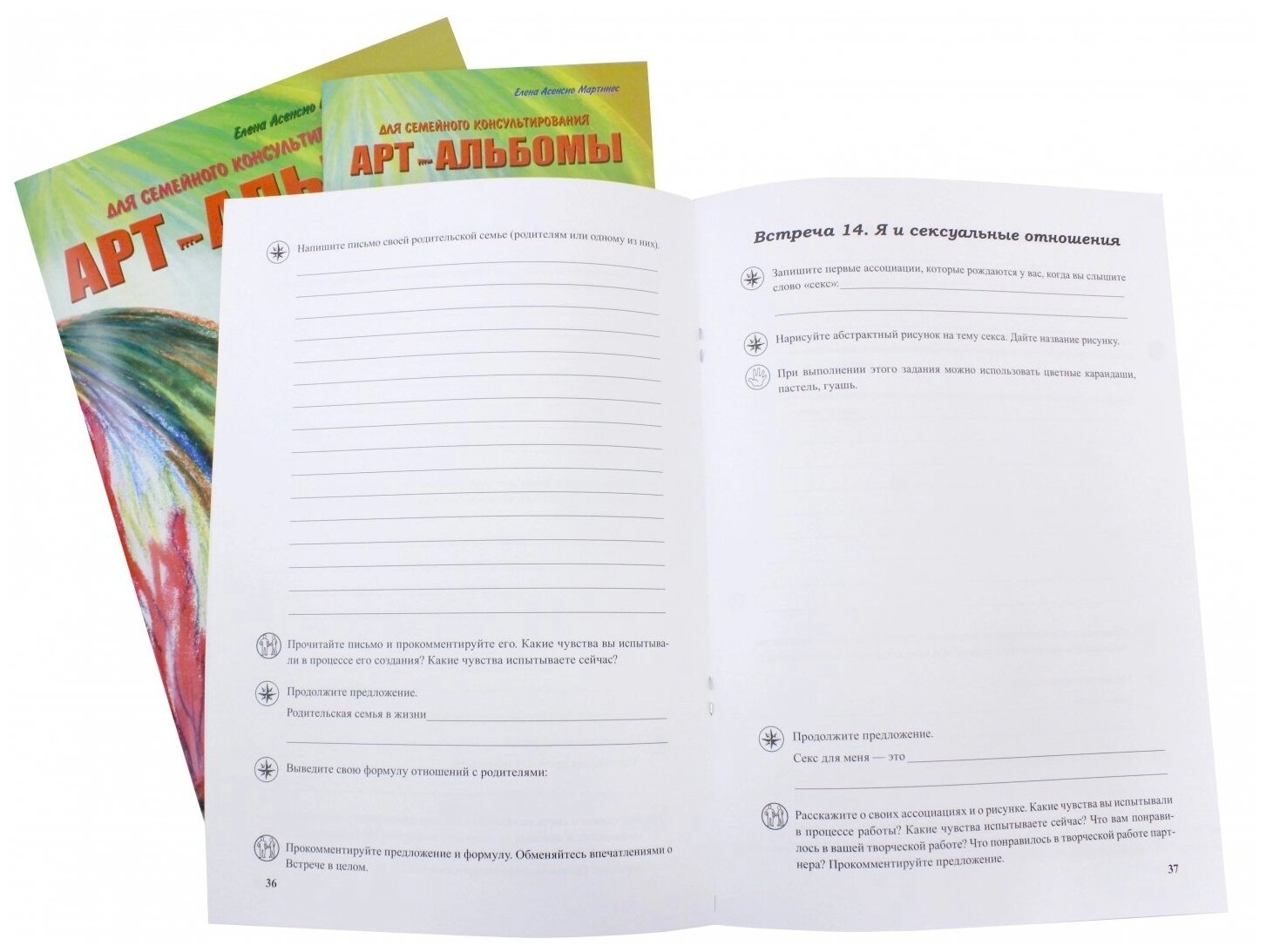 .Комплект материалов может стать незаменимым помощником в работе практического психолога. Использование арт-терапевтических техник делает процесс консультирования более эффективным и интересным. Партнеры одновременно заполняют каждый свой арт-альбом, обсуждают творческие работы, иногда работают совместно. Такая деятельность создает условия для более глубокого самопознания, познания партнера и развития взаимоотношений в целом.