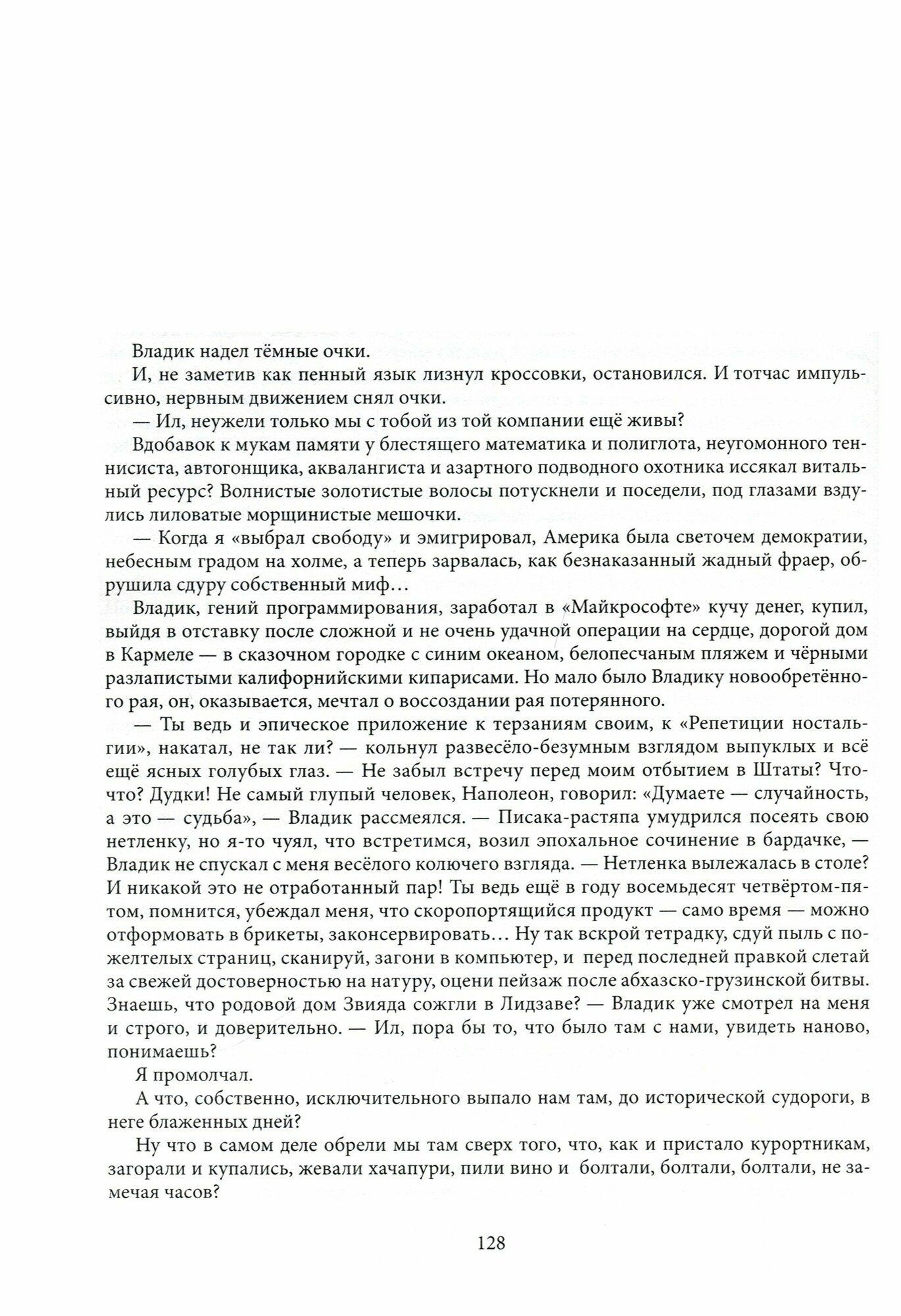 Легенды, сказы, пересказы, байки, споры, диалоги и монологи, исповеди и проповеди, прямая речь автора… Слово - в его многообразии, - оглашённое под реликтовыми соснами, в безмятежной среде, казалось, пробуждало её многовековую энергетику и резонировало с ускорявшимися ритмами будущего: всё вокруг неуловимо менялось, события, принимая неожиданный оборот, набухали темноватой символикой, лирические герои, не замечая того, начинали действовать и говорить в эпических обстоятельствах, а сквозь пестроту идей, тем, личных привязанностей и устремлений, сплетавшихся в повествовании, всё явственнее проступала история одной компании - фанатиков места и критиков времени, которым, как выяснилось, суждено было при смене геополитических вех уйти вслед за ним, невольно подведя черту под советской эпохой. Странная курортная общность, календарно возникавшая из сезона в сезон на берегу счастливого легкомыслия и драматично распавшаяся, оживает в прощальном взгляде. Что это было? Сейчас кажется - роскошное закатное облако, чудом вылепленное из мгновений и разрушенное порывом ветра.