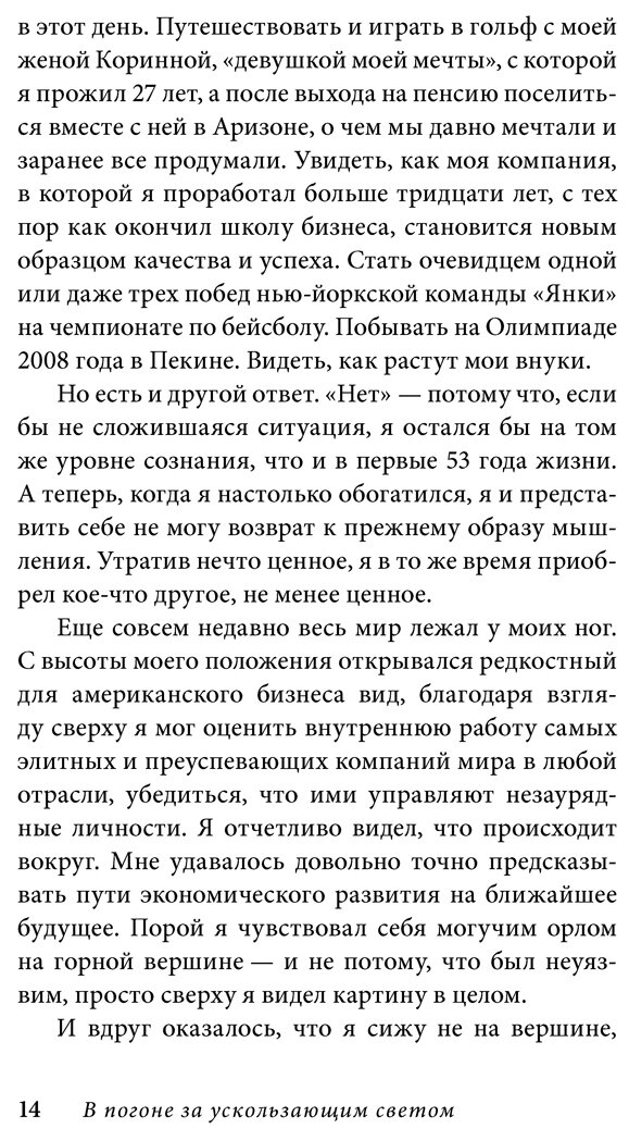 "В погоне за ускользающим светом" - дневник мучительного расставания успешного и незаурядного человека с горячо любимым миром; вдохновенная, страстная и бесконечно мудрая книга о поиске смысла жизни и обращении к истинным ценностям перед лицом близкой смерти.