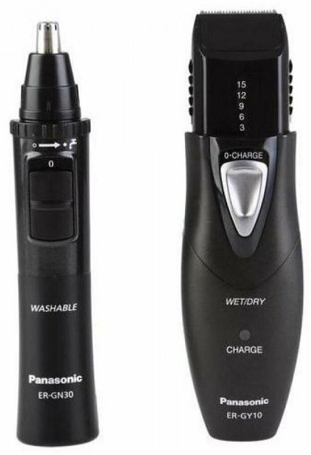 Набор PANASONIC укомплектован двумя особенными девайсами для срезания волос. Машинка используется, чтобы оформить красивую бороду и усы, а триммер позволяет выполнить весьма трудную задачу по стрижке волос в носу и ушах. Устройство для стрижки усов и бороды имеет в комплекте насадки, соответствующие длине срезаемого волоса (3-15 мм). Вы можете использовать его по назначению либо срезать нежелательные волосы, депилировать деликатные зоны и пр.