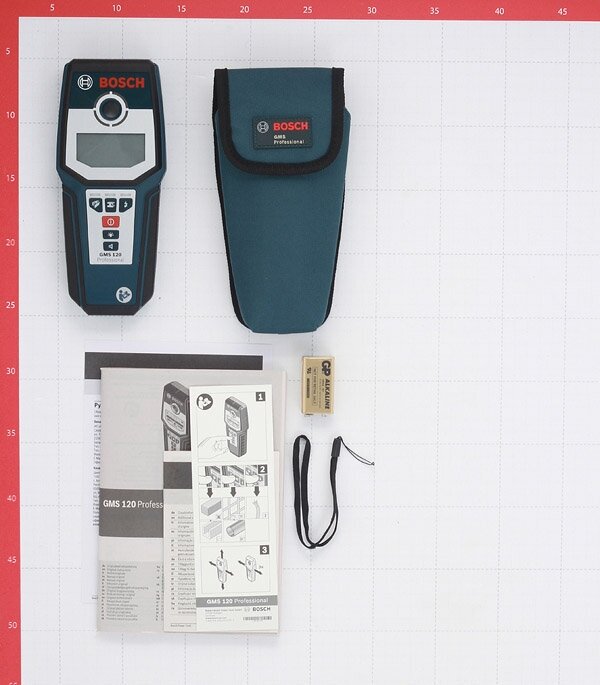 - Детектор Bosch GMS 120 (детектор проводки, дерева, металлоискатель). Ящик с инструментом