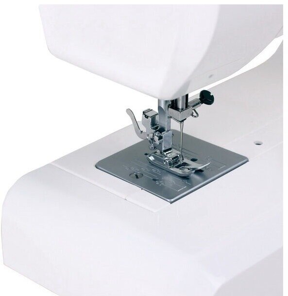 Janome J76S – машина с механическим управлением и универсальным набором операций. Отличный баланс функциональности, продуманного дизайна и цены. Надёжный корпус и вертикальный челнок обеспечивают долгий срок службы модели. Отличные отзывы заработал автоматический режим для прорезных петель, а также удобный нитевдеватель. Все необходимые строчки регулируются по длине и ширине с помощью регуляторов на корпусе. Там же находится кнопка обратного хода (реверс).