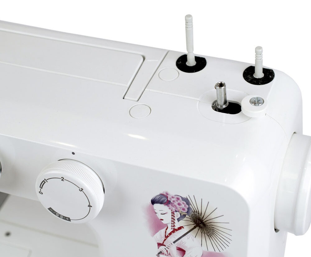 Простая и лёгкая в работе электромеханическая швейная машина Janome работает с различными видами современных тканей и отлично подходит для начинающих портних. Свободный рукав, реверс, шитье двойной иглой и быстрая смена лапки обеспечивают удобство эксплуатации. Все виды оверлочных строчек и возможность работы с тонкими тканями помогут Вам в домашних условиях справится с любой задачей. Максимальная ширина строчки составляет 5 мм, длина стежка - 4 мм.