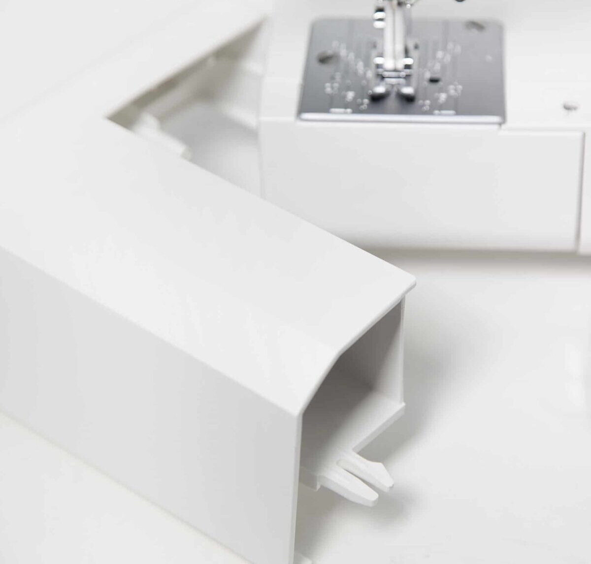 Janome имеет петлю-полуавтомат, которая выполняется в четыре приема без поворота ткани с помощью специальной петельной лапки. Благодаря оверлочным операциям, Вы без проблем сможете обработать край изделия, чтобы он не сыпался, а с помощью потайных строчек - легко и быстро подшить низ изделия.
