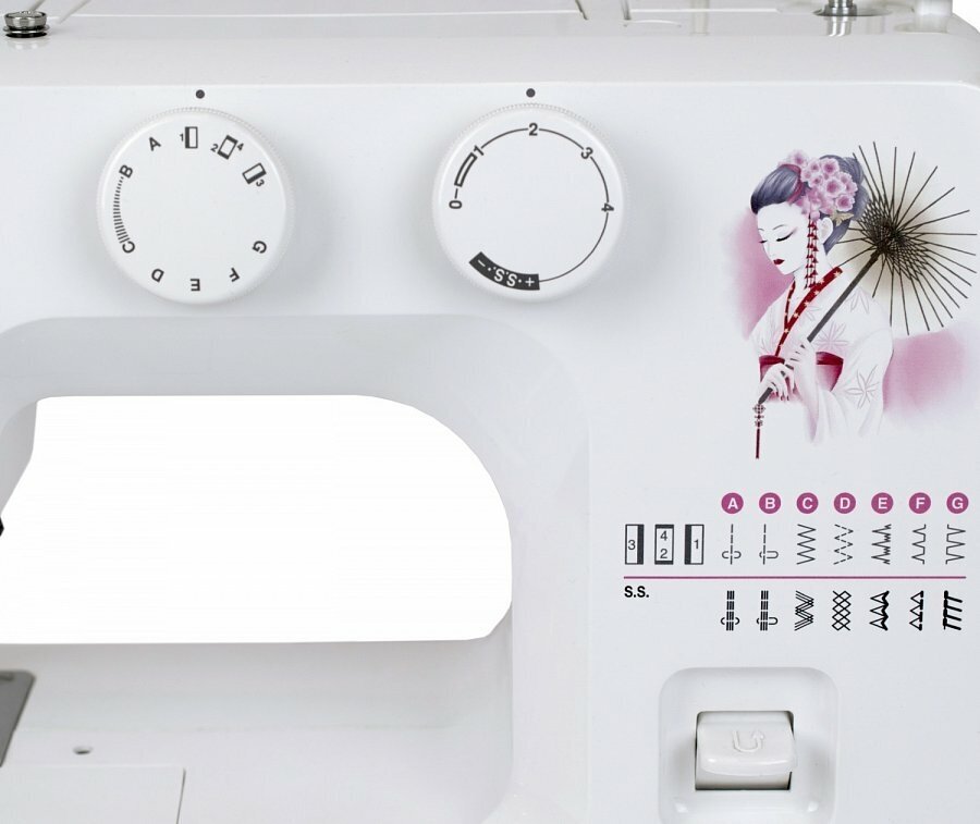 Практичная и надежная бытовая швейная машинка для всех видов тканей. Относится к бюджетному классу бытовых швейных машин для ремонта одежды и несложного пошива. JANOME оснащена 15 швейными операциями и классическим вертикальным качающимся челноком. Передняя панель машинки с эксклюзивным рисунком. Модель JANOME имеет аналоги с названиями Janome 4400 и Janome 5500. Отличия моделей в различном отделочном орнаменте на передней панели машинки.