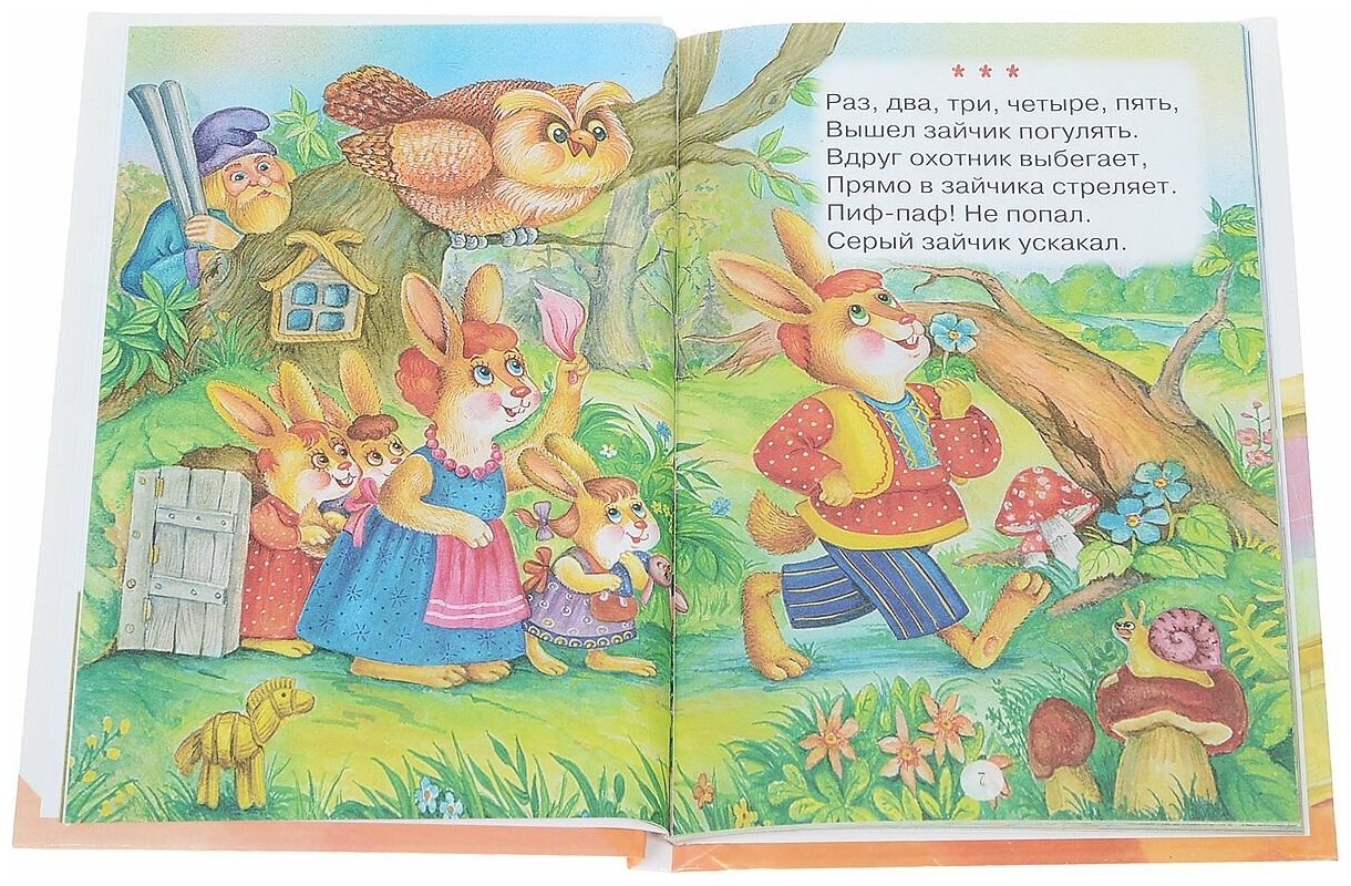 Очень приятная книга. Я не пожалела о приобретении. Художники искусно и щедро украсили детские считалочки красочными иллюстрациями того, о чем говорят незатейливые тексты считалок, как знакомых мне с детства, так и прочитанных мною впервые в этом сборнике. Моей дочке двух лет очень интересно рассматривать иллюстрации, особенно на считалочке "Тише, мыши!". Обложка книжки твердая, настоящая, не помнется в детских руках. Листочки внутри плотные белые, без запаха, сшиты в корешок. Размер: 16,5 см х 11 см, толщина 7 мм. Имеется неудобство в чтении - нужно прилагать усилие, чтобы полностью раскрыть книгу и рассмотреть рисунок.