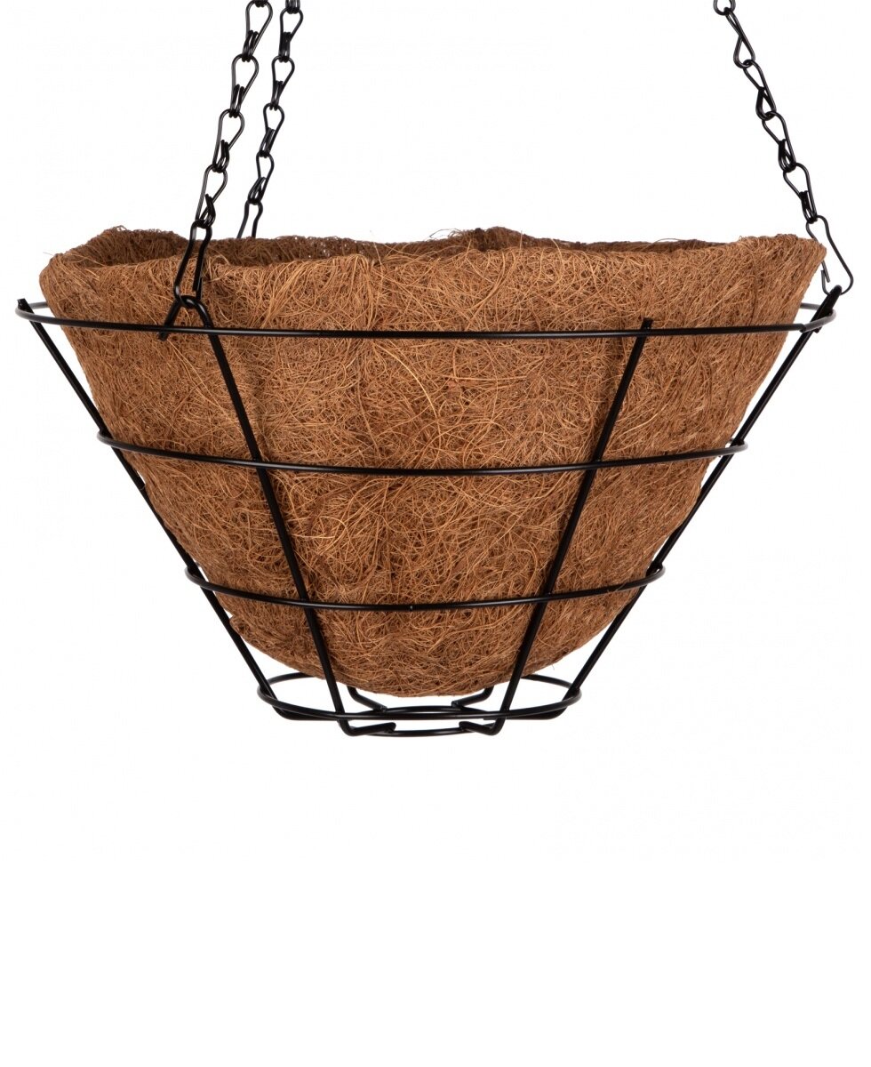 Кашпо подвесное с вкладышем из коковиты в форме конуса Palisad , диаметр 30 см, используется для посадки ампельных и вьющихся растений. Оно станет прекрасным украшением дома или сада. Кашпо подходит для подвешивания как внутри, так и снаружи помещения.