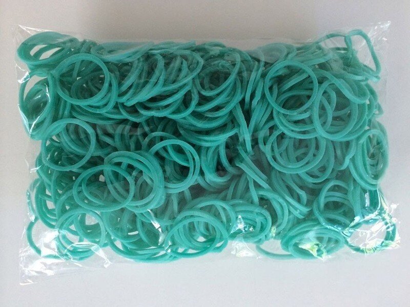 Яркие резиночки бирюзового цвета порадуют каждую мастерицу и помогут создать красочные украшения и аксессуары с помощью популярного способа плетения Rainbow Loom. Миниатюрные резиночки эластичные, их удобно нанизывать на станок, создавая различные узоры крючком или руками. Концы браслета или ожерелья можно скрепить при помощи пластиковой с-клипсы.