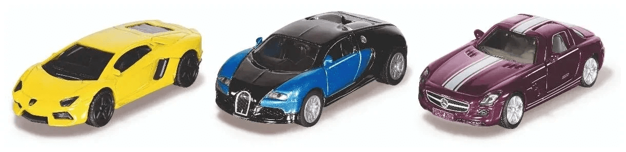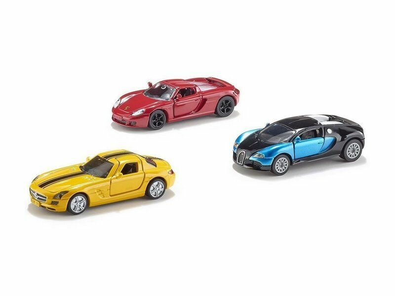 Siku Набор машинок 3 шт. - красочные машинки помогут Вашему малышу весело провести время дома и на улице. Яркие машинки полностью повторяют оригинал и удобны для игр детей всех возрастов. В наборе представлены великолепные спортивные автомобили Porsche Carrera GT, Bugatti Veyron и Mercedes-Benz SLS. Игрушечные модели машин выполнены из качественных материалов, сочетающих металл и прочный пластик. Подходят для детей старше 3-х лет. Машинки выполнены из металла, стёкла из прозрачного пластика. Колёса выполнены из резины, крутятся, машинки можно катать. Двери машинок открываются. Машинки Siku продаются в картонной упаковке с прозрачным окном.