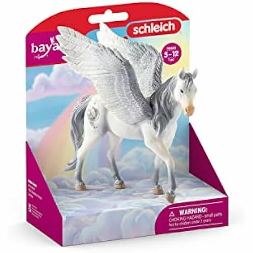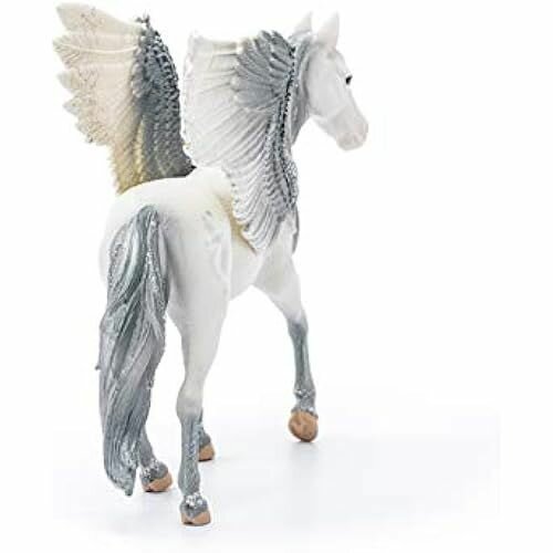 Фигурка от торговой марки Schleich представляет собой мифическое существо - пегаса, то есть лошадь с крыльями. В вымышленной стране Bayala эти красивые животные не редкость, и можно часто наблюдать их легкий полет высоко в лазурном небе. Обитатели Баялы бережно относятся к пегасам, ведь они символизируют чистоту души. Эта фигурка невероятно точно передает внешние особенности существа, веками описываемого в мифах и легендах.