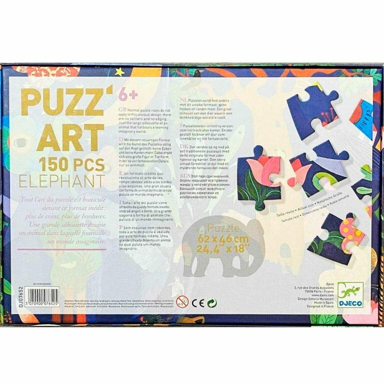 Пазл Слон от французского производителя игрушек Djeco – великолепный увлекательный фигурный пазл, который станет замечательной игрой не только для детей, но и для взрослых. В наборе ребенок найдет 150 красочных интересных деталей, с помощью которых нужно собрать пазл в виде красочного слона. Пазл прекрасно развивает логику и сообразительность, тренирует моторику детских ручек и учит малыша внимательности и усидчивости. Паз продается в красивой коробке и идеально подходит для подарка. Все детали изготовлены из высококачественных материалов. Французская компания Джеко производит развивающие игрушки и игры для детей, а также наборы для творчества и детали интерьера детской комнаты. Все товары Джеко отличаются высочайшим качеством, необычной идеей исполнения. Изображения и дизайн специально разрабатываются молодыми французскими художниками.