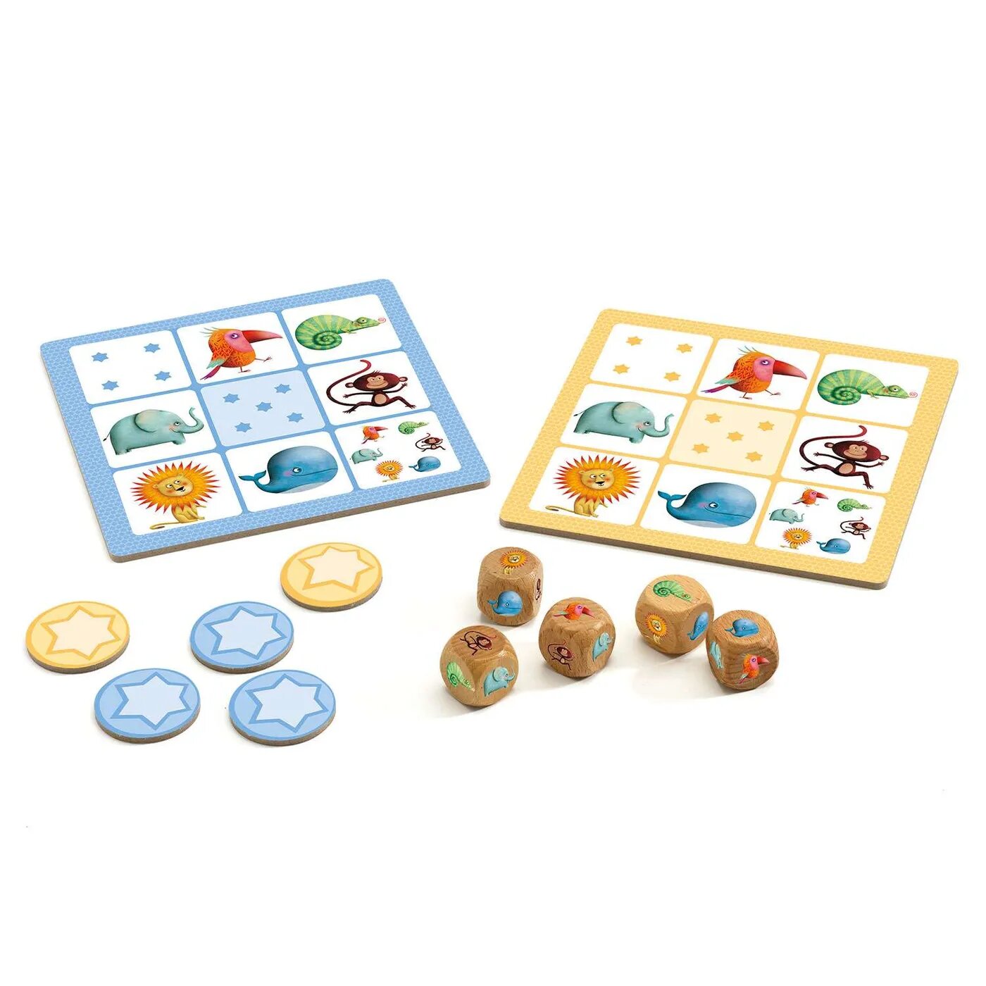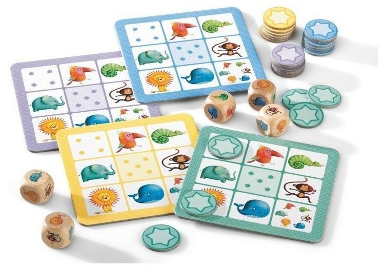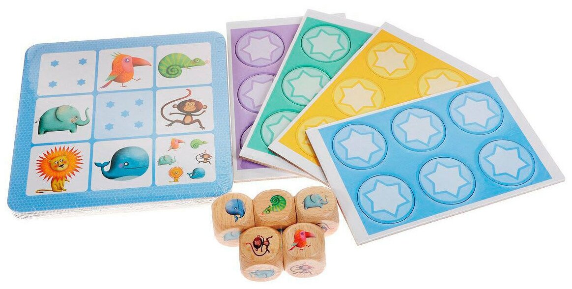 | Состав набора | 5 деревянных кубиков 24 карточки звезд и 4 игровых платы |