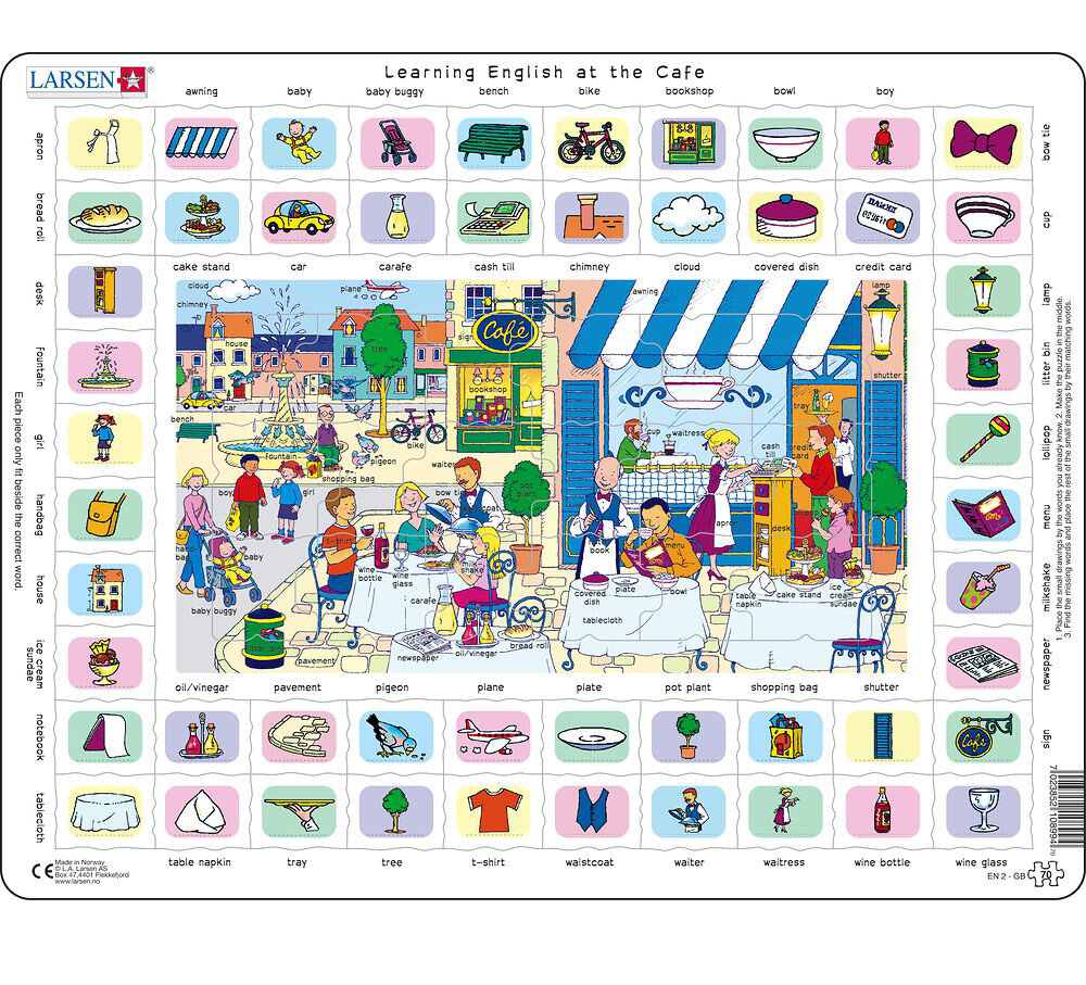 Пазлы Ларсен - это современные обучающие пазлы. Серия Изучаем Английский предназначен для детей от 6 лет. В центре пазла изображен сюжет, где каждый предмет подписан (по-английски). Вокруг этого сюжета детям необходимо правильно расположить отдельные предметы. Многообразие форм вырубки и различные размеры отдельных элементов способствуют развитию мелкой моторики у малышей. Сделанные из высококачественного трехслойного картона, они не деформируются и легко берутся в руки. Все пазлы снабжены специальной подложкой, благодаря чему их удобно собирать. В наборе: 70 элементов пазла. Размер собранного поля - 36,5 х 28,5 см.