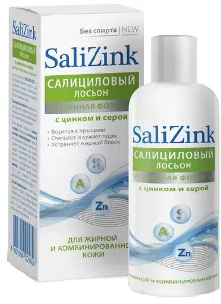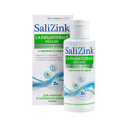 Новая формула салицилового лосьона Salizink усиленная цинком, серой и витамином А быстрее и эффективнее решает проблему появившихся прыщей и воздействуют на причины их возникновения. Средство для борьбы с прыщами специально разработано для ухода за жирной и комбинированной кожей. Тщательно подобранные компоненты регулируют липидный баланс эпидермиса и, снижая секрецию сальных желез, устраняют жирный блеск. Решает проблему появившихся прыщей и воздействуют на причины их возникновения.