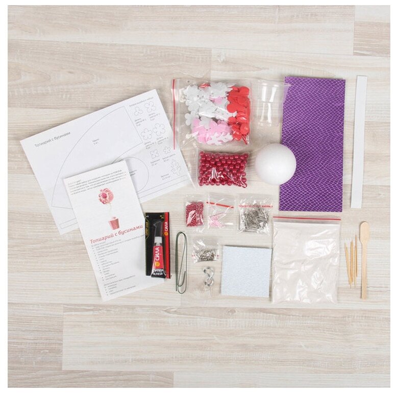 Состав набора | пенопластовый шар; пористая резина; органза; проволока; стакан; гипс; ложка; зубочистки; гвоздики-булавки; бусины; бисер; сизаль; клей; выкройка |