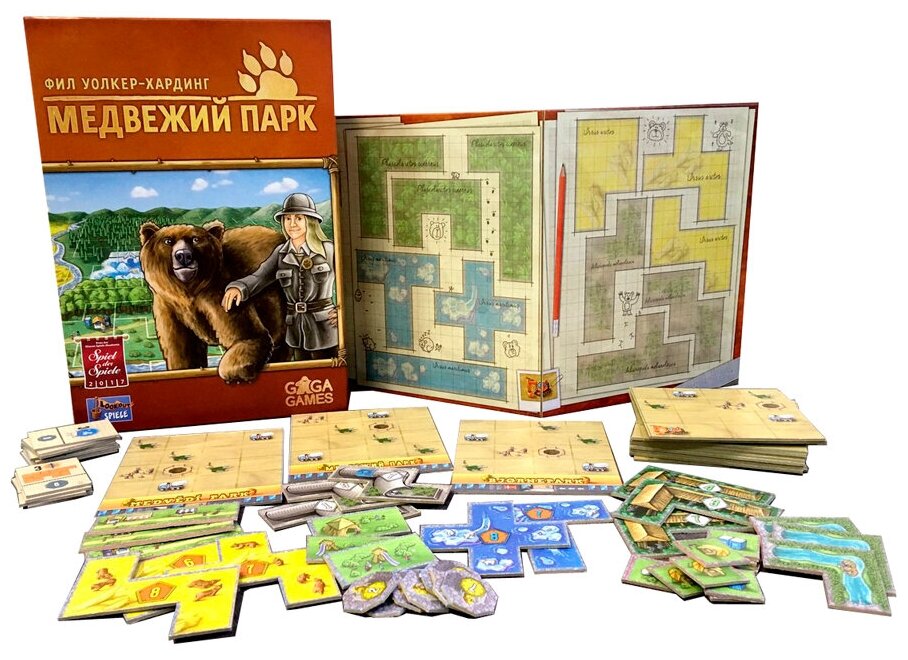 | Состав набора | участки парковой зоны 52 шт.,строительные площадки 16 шт.,достижения 30 шт.,медвежьи статуи 16 шт.,участки павильонов 28 шт.,участки вольеров 12 шт.,поле хранения,правила игры |