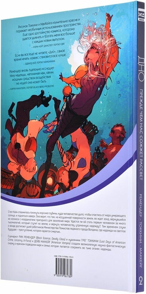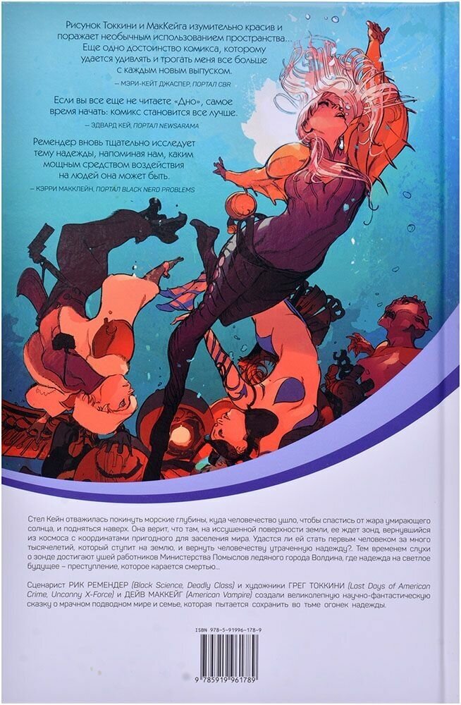 Сценарист Рик Ремендер (Black Science, Deadly Class) и художник Грег Токкини (Last Days of American Сrime, Uncanny X-Force) создали великолепную научно-фантастическую сказку о мрачном подводном мире и семье, которая пытается сохранить во тьме огонек надежды.