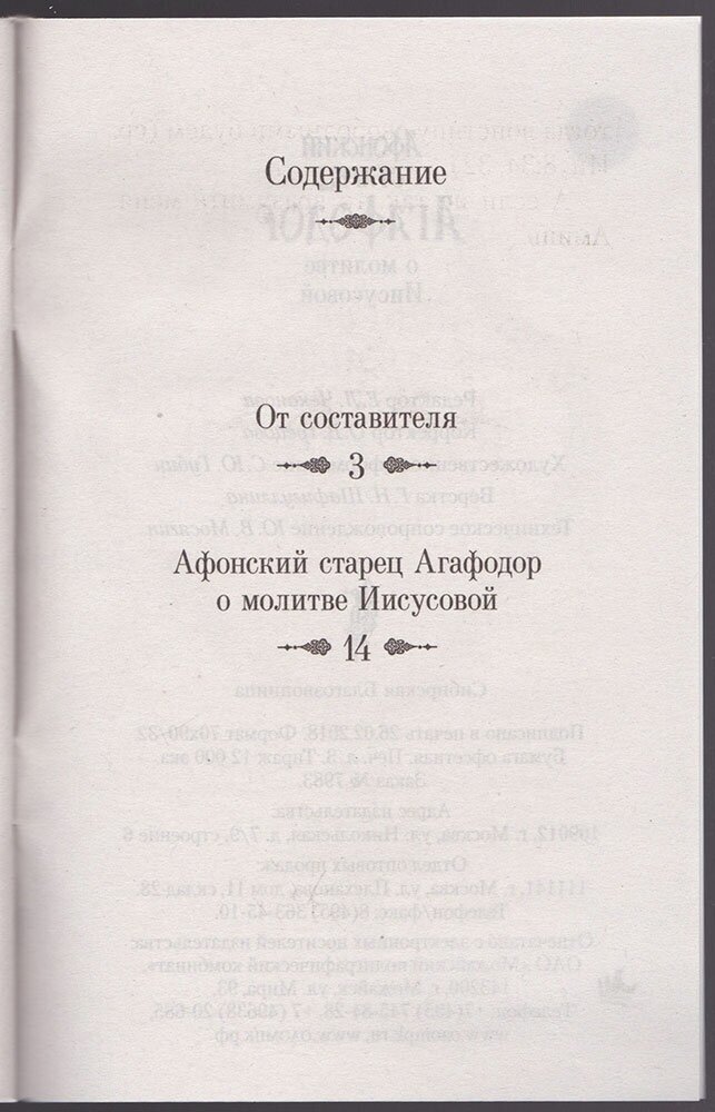 Афонский старец Агафодор о молитве Иисусовой (Арсений (Святогорский) (сост.)); Сибирская Благозвонница, Сибирская Благозвонница, 2018