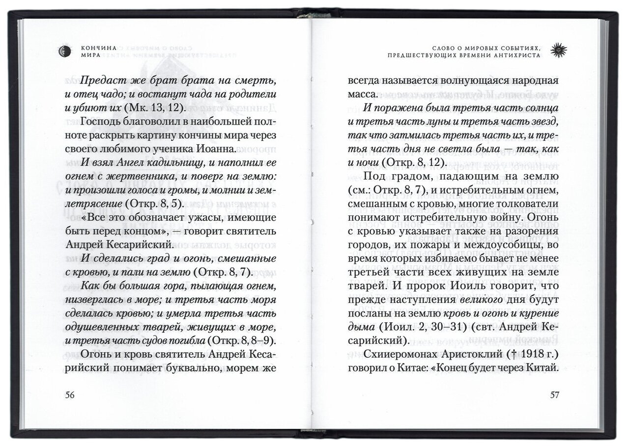 Замечательная и полезная книга архимандрита Наума (Байбородина) (1927-2017) о последних временах, написана отличным языком и не даёт оторваться! Всё ясно и понятно изложено, много цитат и Священного Писания и Библии. Твёрдый переплёт и хорошая бумага делают чтение приятным! Книга разбита на главы, в тексте есть ссылки на источники, которые помещены в конце книги! Прочитал книгу с огромным удовольствием!