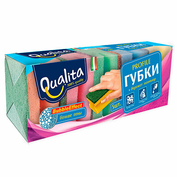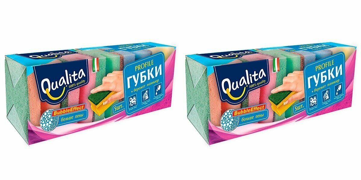 Набор губок от торговой марки Qualita созданы специально для мытья посуды. В комплект входит пять двухсторонних губок. Одна сторона у них мягкая предназначенная для деликатной чистки, а вторая - жесткая идеально подходящая для удаления въевшейся грязи или застарелых пятен. Губки выполнены из качественного материала, который эффективно впитывает воду, не боится перепадов температур и бытовой химии. Благодаря удобному размеру и форме с углублениями по бокам изделие удобно держать в руках, что позволяет обрабатывать большие поверхности. Губки для посуды станут незаменимым помощником по уходу за кухней и кухонной утварью.