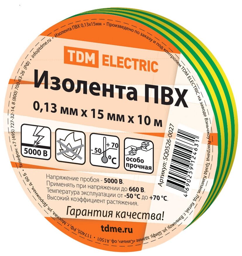 Модель: Изолента TDM Electric желто-зеленая 10 м
