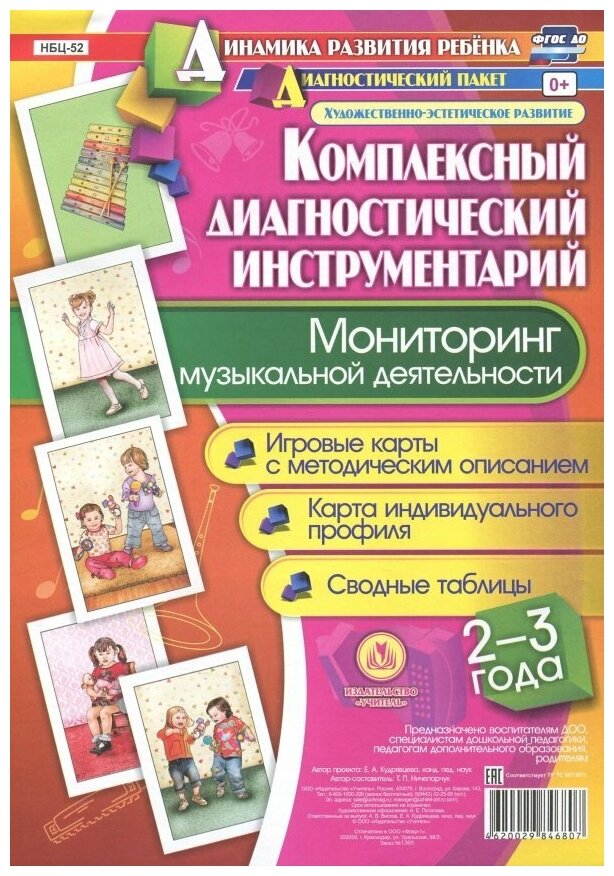 Мониторинг музыкальной деятельности. 2-3 года. Игровые карты с методическим описанием. Карта индивидуального профиля. Сводные таблицы (+ методическое руководство) (Ничепорчук Татьяна Петровна); Учитель, 2018