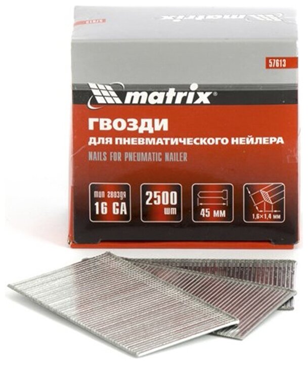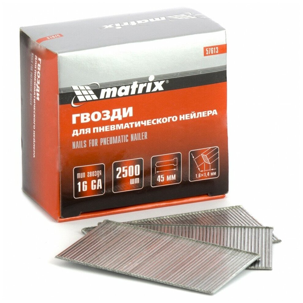 Гвозди MATRIX 16ga для пневматического нейлера сечение 1.6х1.4 длина 45мм 2500шт