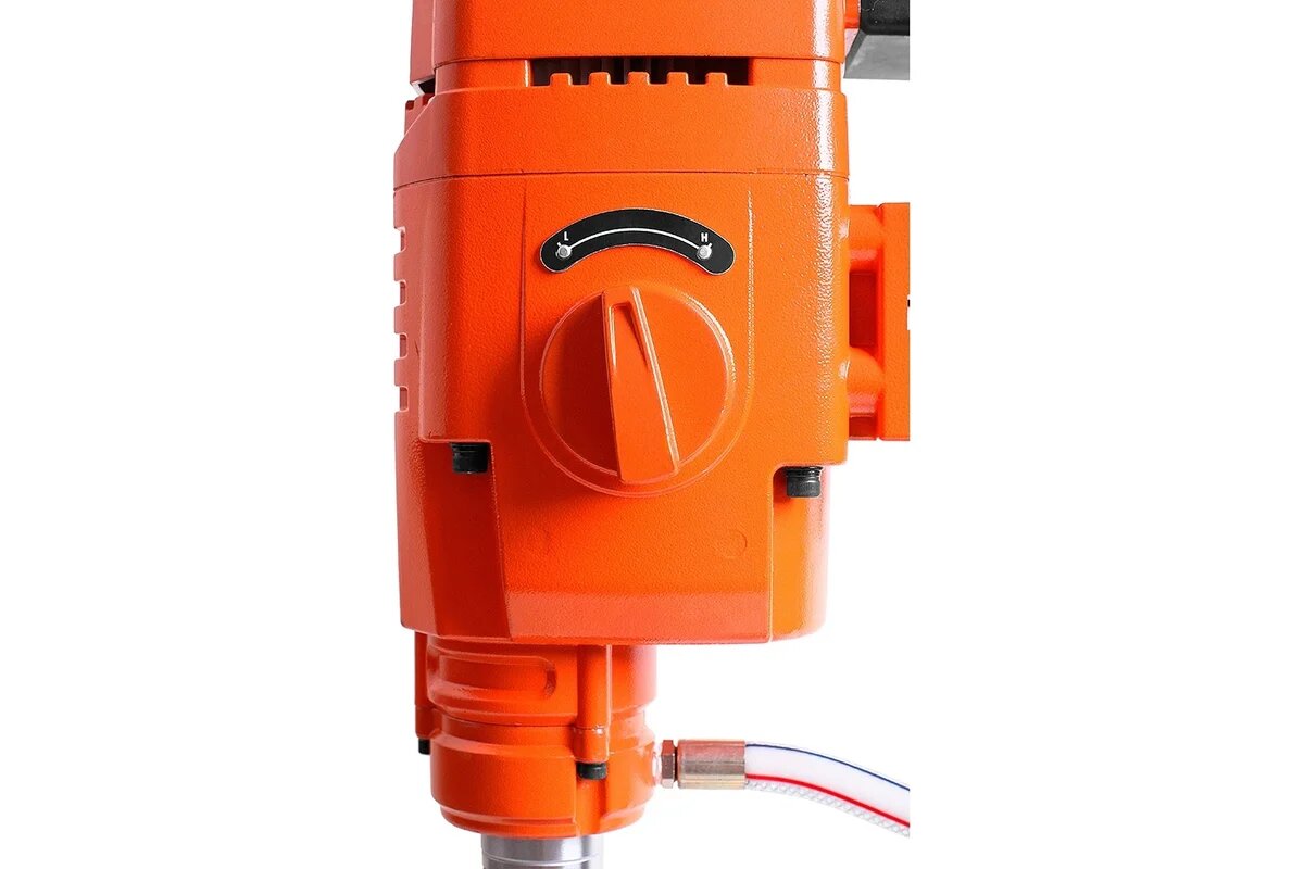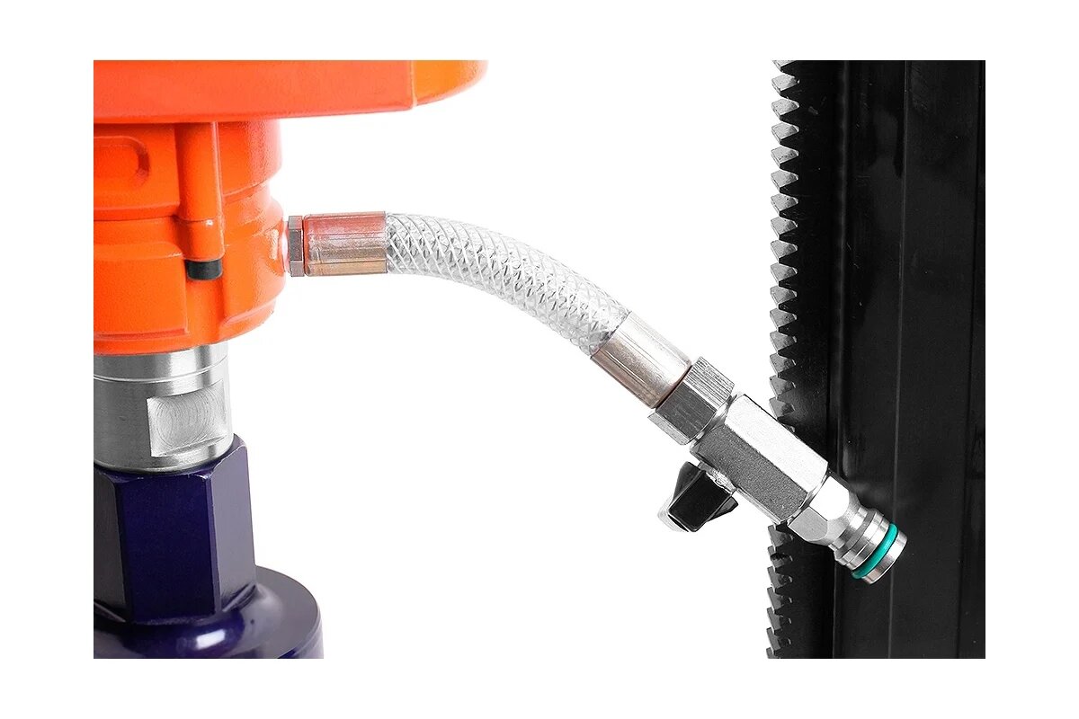 Установка предназначена для сверления отверстий диаметром до 250 мм в бетоне, железобетоне, кирпиче, асфальтобетоне. Двигатель оснащен двумя скоростными режимами, плавным пуском и системой защиты от перегрузки и перегрева. На него возможно установить алмазные коронки с соединениями " и 1". Стойка с рейкой из высокопрочного магниевого сплава, с литой опорной платформой, с функцией наклона и транспортировочными колесами. Двигатель устанавливается на стойку с помощью быстросъемной плиты.