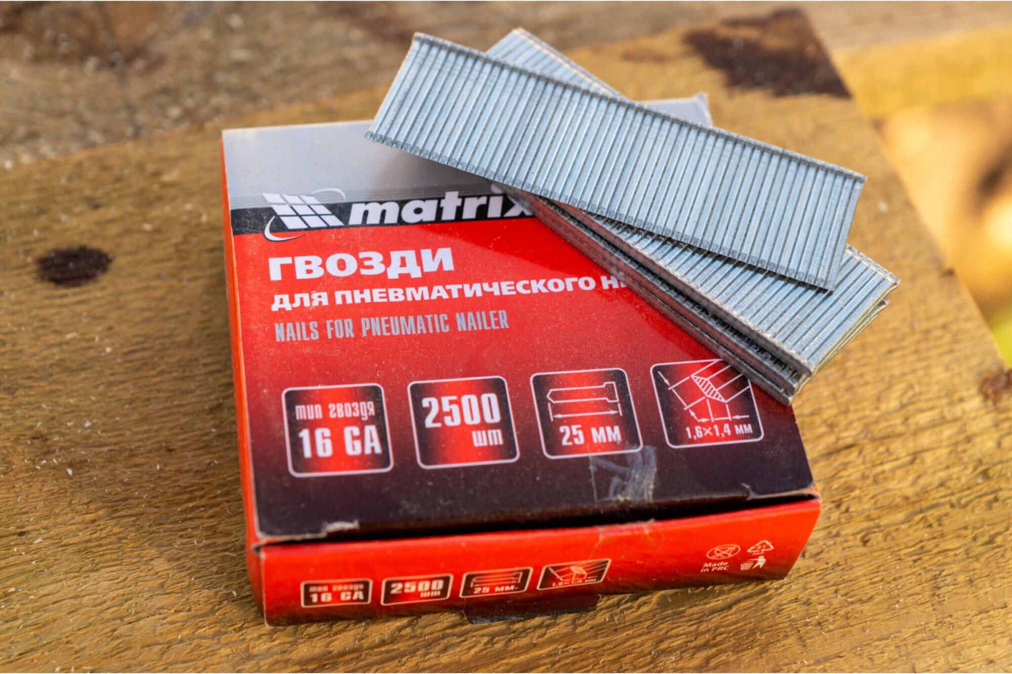 Гвозди MATRIX 16ga для пневматического нейлера сечение 1.6х1.4 длина 25мм 2500шт