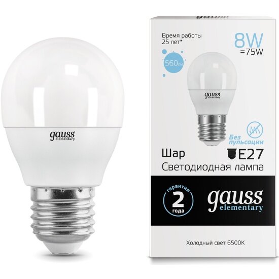 Лампа светодиодная Gauss Elementary 8Вт цок.:E27 (упак.:10шт)