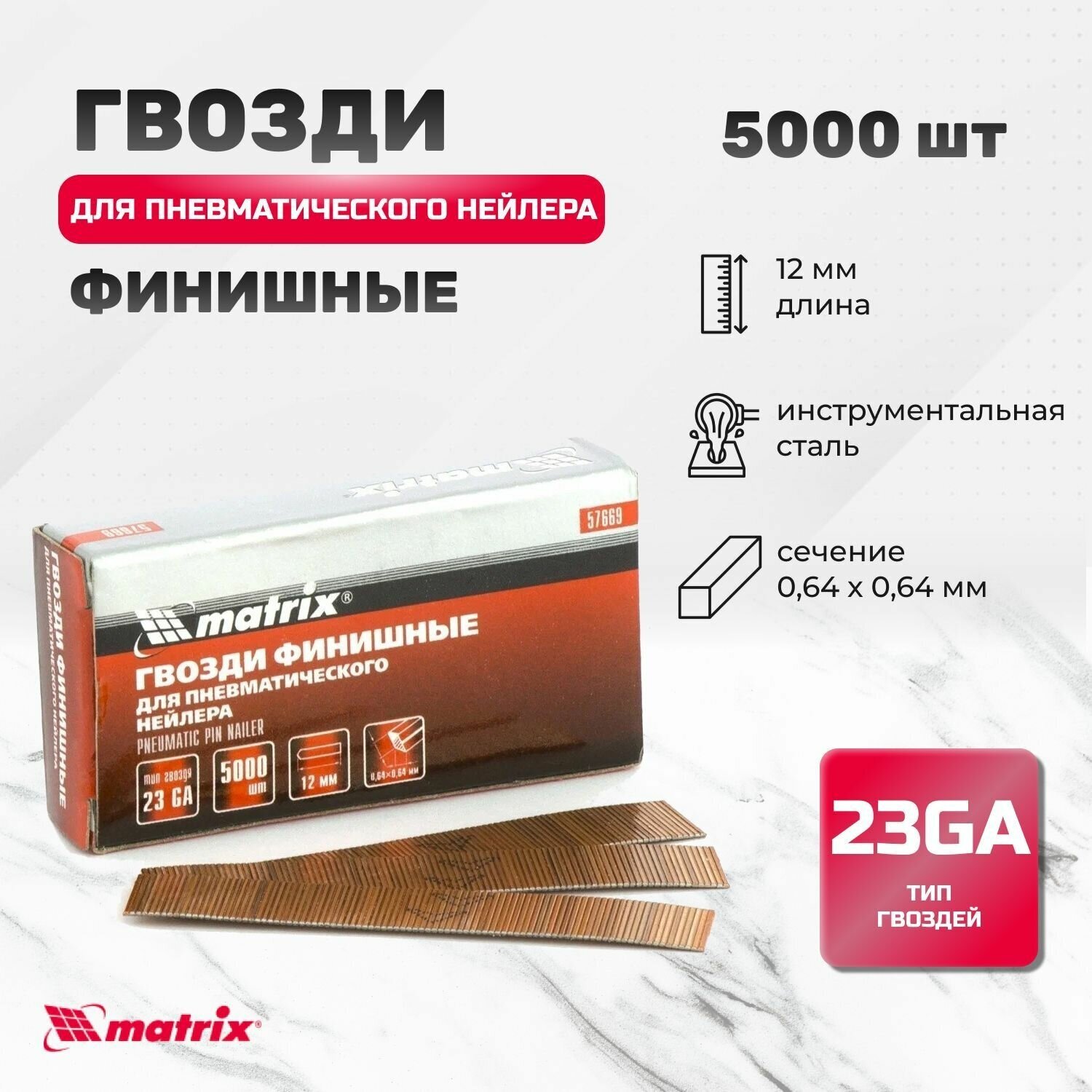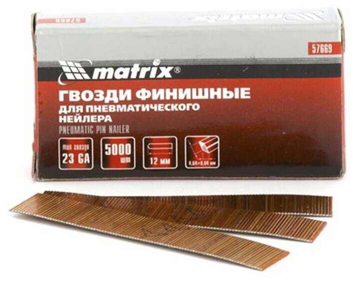 Гвозди MATRIX финишные (шпильки) 23ga для пневматического нейлера Ф0.64мм 12мм 5000шт