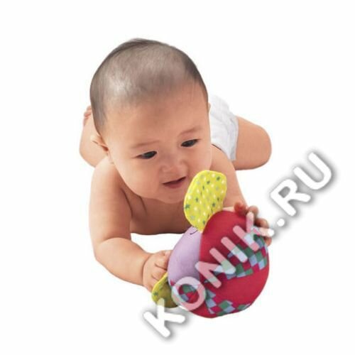 Ребенку 3 месяца. В восторге от этого слоника. ушки очень приятно шуршат. Держит ручками за ушки, мнет из и тянет в рот. Когда слоника трясешь,он издает приятный звук (как колокольчик).