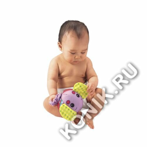 Резиночку пока на ножку не одевали,рано еще. малыш ножки еще не нашел. надеюсь,что дальше по мере взросления будем использовать игрушку по назначению.