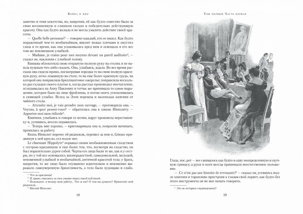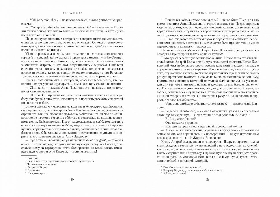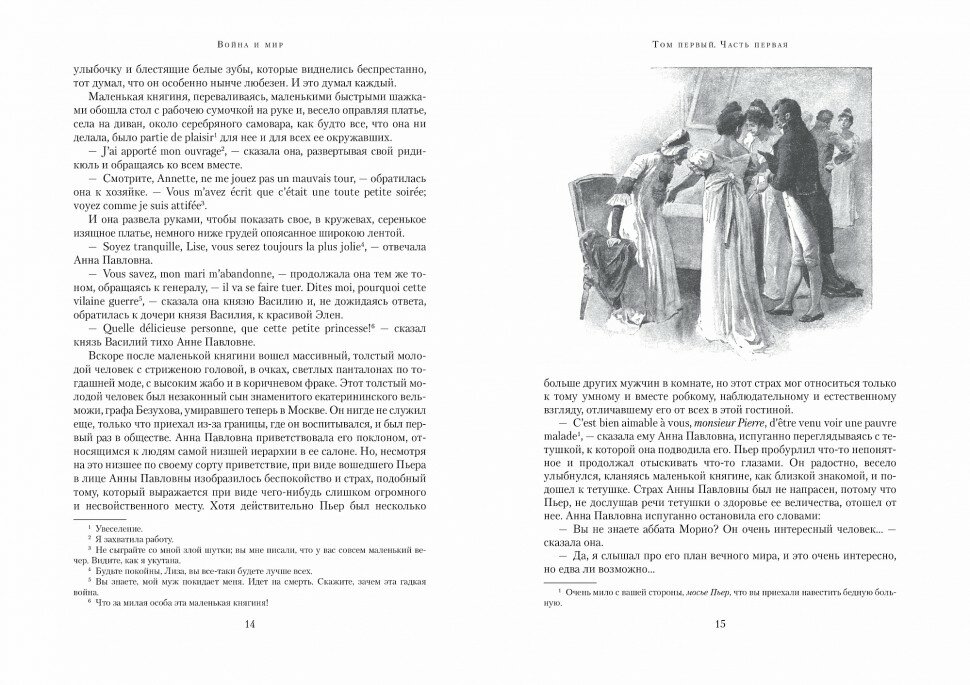 Большущее иллюстрированное издание, очень красивое, тяжелое, читать, не сходя с места. Издатели обещают, что тут впервые за 70 лет, а у нас впервые вообще, напечатаны все-все иллюстрации известного чешского художника С. Гудечека к Войне и мир, их действительно много. Издание прекрасное по соотношению цена-качество, можно лучше, лучше бумагу, лучше качество иллюстраций, но это обычно книги более высокой ценовой категории. Понравилось также, что комментарии и переводы с французского по тексту, а не в конце. О сюжете говорить нет смысла, это произведение все в добровольно-принудительном порядке грызут в 10 классе. Однако во взрослом возрасте его читать куда интереснее (особенно, если пропускать местами морализаторство).