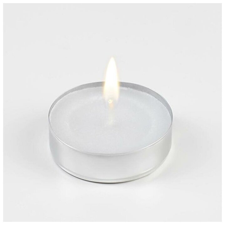 Набор Омский свечной завод состоит из 10 круглых чайных свечей без запаха, изготовленных из парафина и хлопчатобумажной нити.