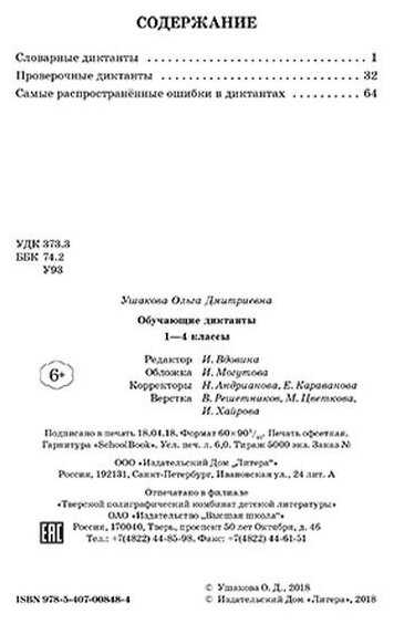 Обучающие диктанты. 1-4 классы (Ольга Дмитриевна Ушакова); Литера, 2020
