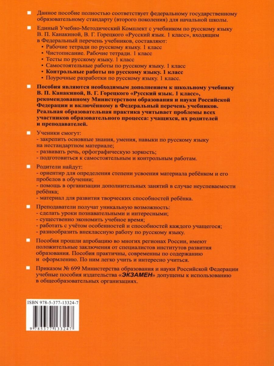 Контрольные работы по рус. языку 1 кл.КанакинаГорецкий. ч.2. (к новому учебнику) (Крылова Ольга Николаевна); Экзамен, 2021