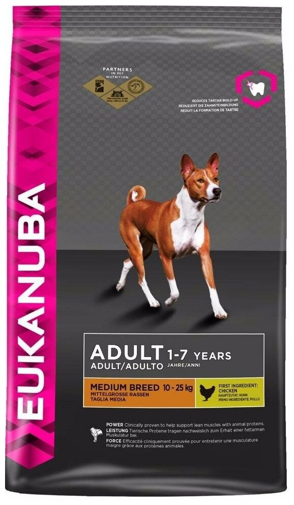 Eukanuba Dog Adult Medium Breed обеспечивает оптимальное питание взрослых собак средних пород. Гранулы среднего размера содержат такие высококачественные компоненты, как животные белки (основной компонент - куриное мясо), жиры, углеводы и клетчатку, а также важные витамины и минералы, необходимые для здоровья и хорошего самочувствия взрослых собак средних пород.