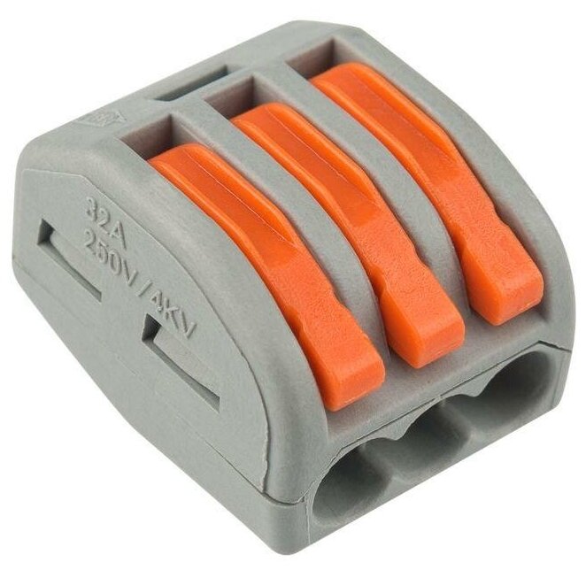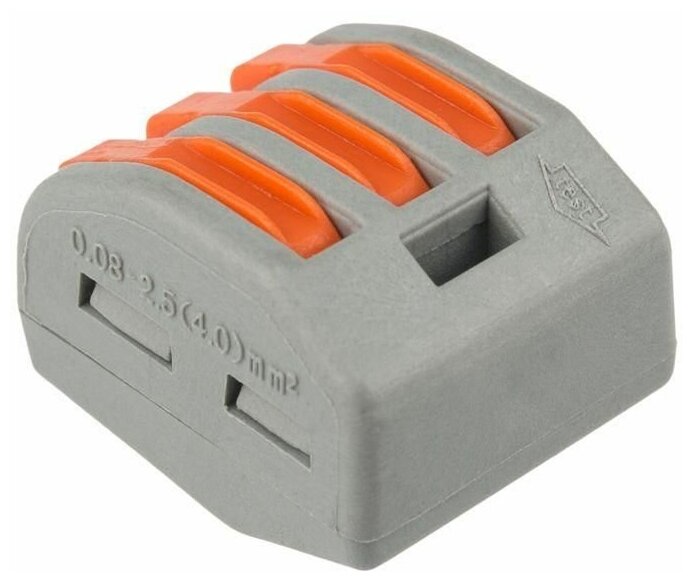 Соединительная клемма используется для подсоединения медных проводов. Данное изделие позволяет соединить три многожильных или одножильных провода. Они фиксируются специальными пружинными зажимами, что исключает случайное извлечение проводов. Специальные отверстия на корпусе позволяют проверить качество соединения тестером-пробником. Пластиковый корпус обеспечивает изолированность контактов