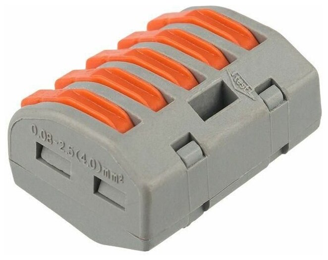 Соединительная клемма используется для подсоединения медных проводов. Данное изделие позволяет соединить пять многожильных или одножильных проводов. Они фиксируются специальными пружинными зажимами, что исключает случайное извлечение проводов. Специальные отверстия на корпусе позволяют проверить качество соединения тестером-пробником. Пластиковый корпус обеспечивает изолированность контактов