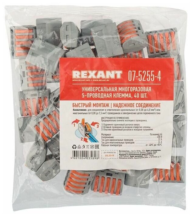 Модель: Клемма соединительная Rexant 5 проводников белый 40 шт