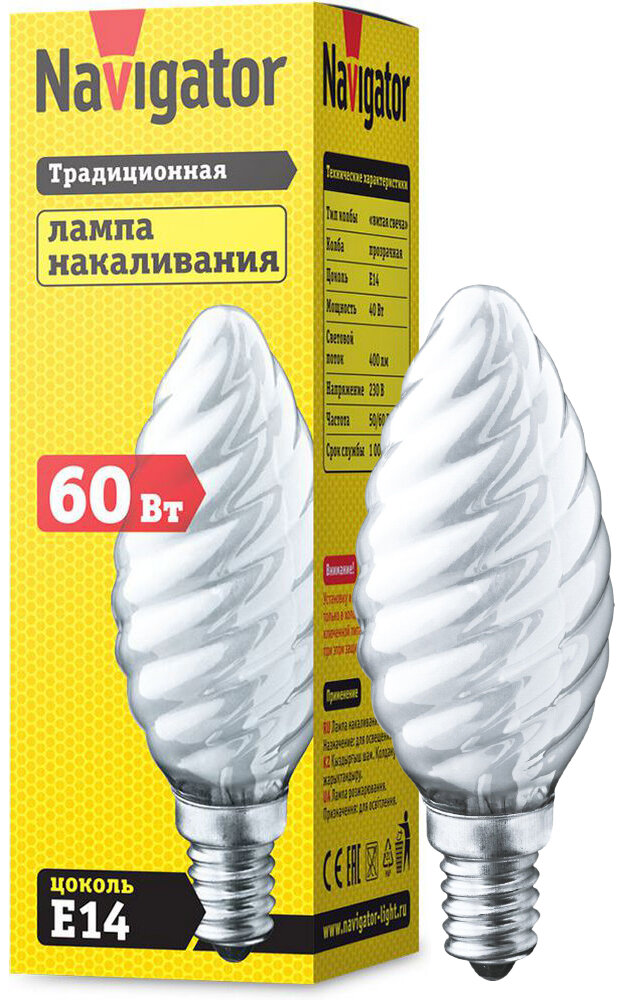Модель: Лампа накаливания Navigator свеча витая матовая 1хЕ14х60 Вт